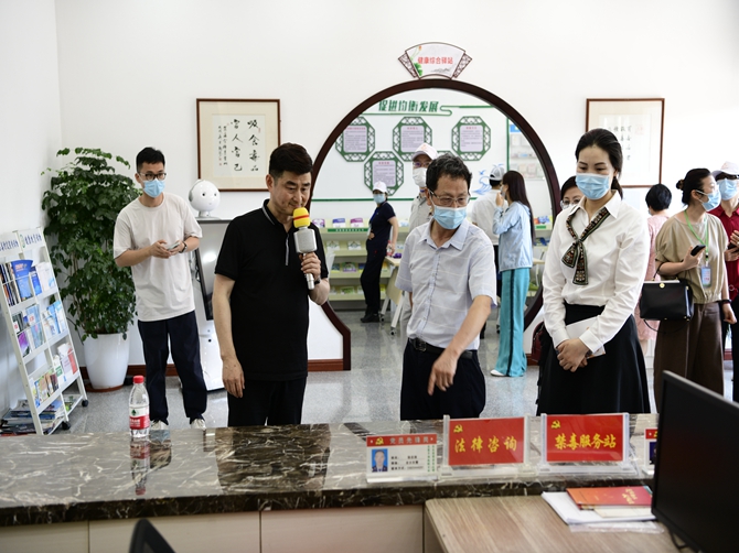 下午2点钟,浙江省计生协专职副会长潘祖光一行在乐清市人民政府副市长陈微燕的陪同下莅临安徽省驻浙江省乐清市流动人口计划生育协会联合会参观调研指导工作。在协会联合会会长陈孝明的介绍下先后参观了协会发展历程展板、综合服务大厅、健康综合驿站、党员活动室、向日葵聊天室等各职能办公室,浏览了协会、党建、卫生健康等相关台账资料。