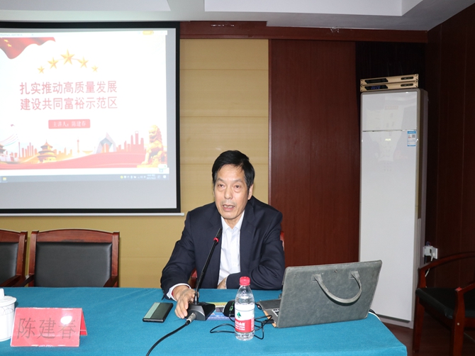 会上,陈建春详细阐述了如何学深悟透习近平总书记关于共同富裕的重要论述精神,探索高质量发展建设共同富裕示范区的具体目标任务是什么,探索推动共同富裕的路径举措有哪些,并提出了民营企业要提高对实现“共同富裕”认识的要求以及关于对为何限电的一点思考。讲解过程由浅入深,紧跟时事,紧贴人民群众日常生活,更加明确了共同富裕是全体人民的共同富裕,是人民群众物质生活和精神生活都富裕的奋斗目标。