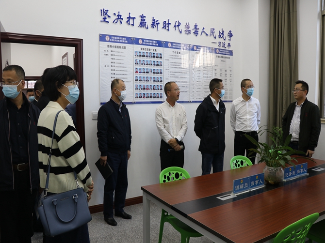 陈祥浩一行在霍邱县驻乐清市流动人口党委副书记贾红印的陪同下先后参观了综合服务大厅、综治驿站等各职能办公室,重点浏览了党建、调解案卷等相关台账资料。
