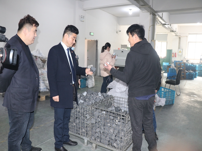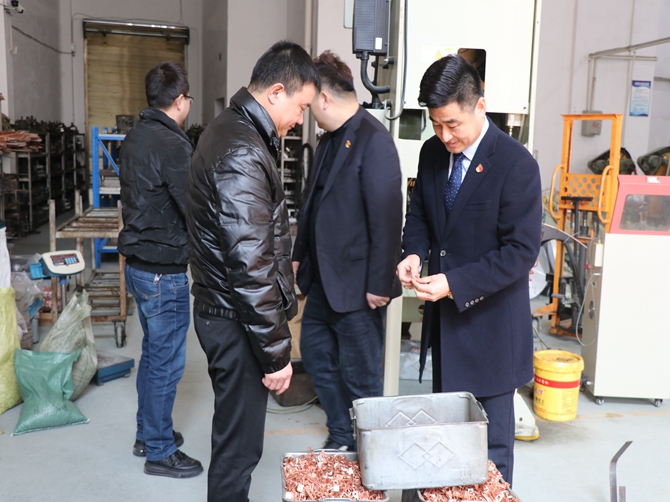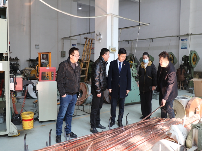 在企业负责人带领下参观了企业的生产车间,了解了企业的生产经营状况。随后,陈孝明与企业负责人进行深入交流,了解企业节后返岗复工人员比例,皖籍农民工的回流情况及企业今后的产业优势、发展方向等基本情况。