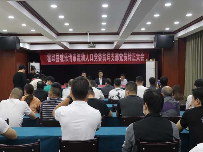 2022年5月19日,霍邱县驻乐清市流动人口党委翁垟支部召开党员转正大会。党委书记陈孝明、党委委员张纯贵、陈维庭等参加会议。党委副书记贾红印主持会议。大会审议并表决通过了代录雪、王庆凤、付振修、代录玲、陈玲、王恒冬、陈金宝7名同志按期转正的事宜。