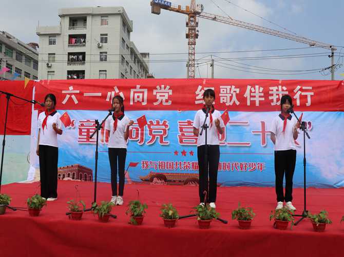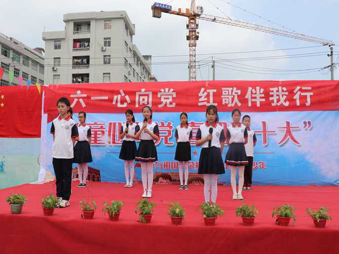 在“我爱北京天安门”的歌声中拉开了“六一心向党 红歌伴我行”文艺汇演的序幕,几十名同学登台献艺,载歌载舞。通过合唱、舞蹈、诗朗诵等节目表达了孩子们对党的向往,对国家的热爱,充分展示了新时代少年神采奕奕的精神面貌和蓬勃向上的朝气活力,赢得了台下师生的阵阵掌声。