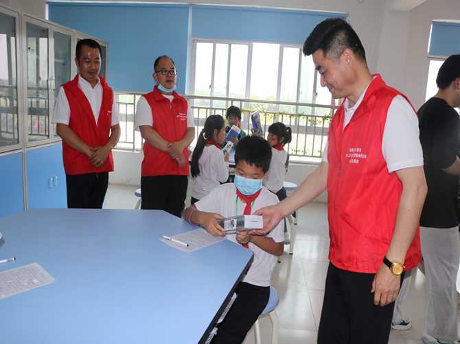 活动结束后,协会志愿者每一位同学送上文具盒等学习用品,学生代表为协会会员代表系上鲜红的红领巾,表达了孩子们的敬爱之情。