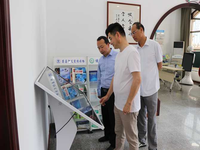 谭克强一行在服务站站长陈孝明的陪同下,先后参观了户外宣传栏、综合服务大厅、健康综治驿站、消费维权服务站、母亲学堂等各职能办公室,浏览了党建等相关台账资料。随后在服务站会议室召开了座谈会。