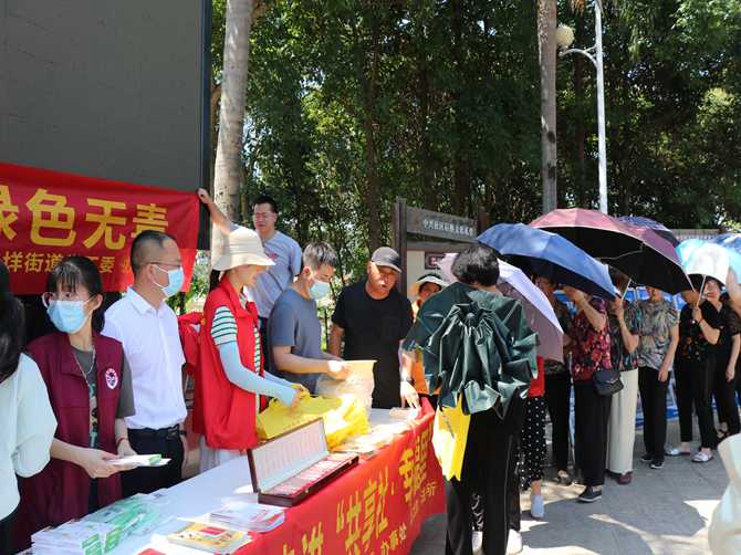 为扎实推进毒品预防教育工作,全面提高人民群众识毒、防毒、拒毒意识,2022年6月23日,在“6·26”国际禁毒日来临之际,霍邱县驻乐清市流动人口党委党员禁毒志愿者基地联合翁垟街道禁毒办在翁垟街道后桥公园开展“健康人生 绿色无毒”户外禁毒宣传活动。