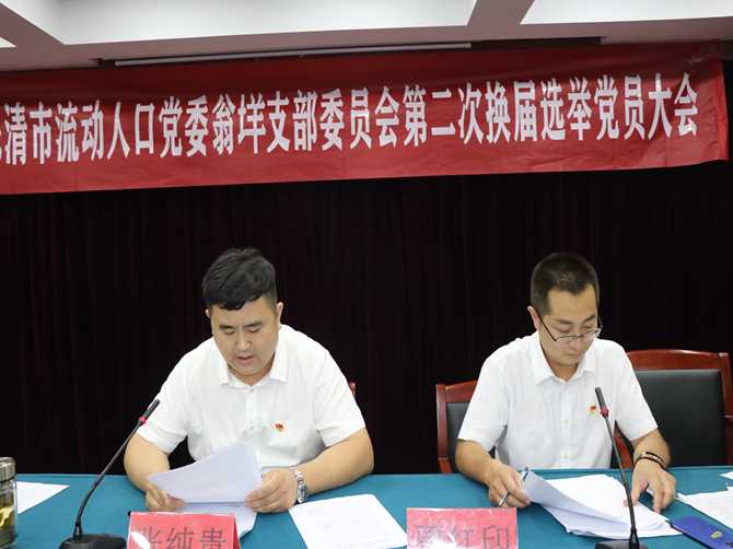 张纯贵首先宣读了范桥镇党委《关于霍邱县驻乐清市流动人口党委翁垟支部委员会第二次换届选举党员大会的批复》。