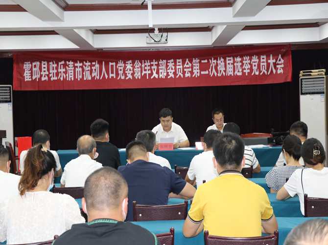 2022年9月20日,霍邱县驻乐清市流动人口党委翁垟支部委员会第二次换届选举党员大会在党委三楼会议室召开,党委委员张纯贵主持会议,翁垟支部全体党员参加。