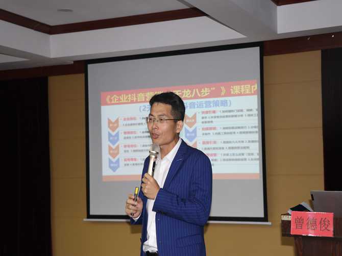 曾老师首先展示了目前抖音粉丝榜TOP100的情况,从抖音短视频的发展和本质核心、抖音热门视频制作技巧、企业如何和短视频融合做好品牌短视频形象和产品直播等方面进行了讲述。分享中穿插了大量生动、真实的案例解析,图文并茂,方便大家理解消化。随后,通过一对一的方式对企业代表们提出的问题细致解答,给予了一些好的思路。