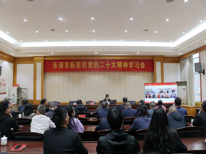 为深学细悟党的二十大精神,2022年11月16日,乐清市新居民服务中心在乐清市老市政府三楼党员活动室召开乐清市新居民党的二十大精神学习会,乐清市新居民服务中心党组书记、主任谢升明主持会议,党的二十大代表赵红霞、市委讲师团成员陈静带领学习,霍邱县驻乐清市流动人口党委班子成员、各商会班子成员、新居民代表等参加会议。