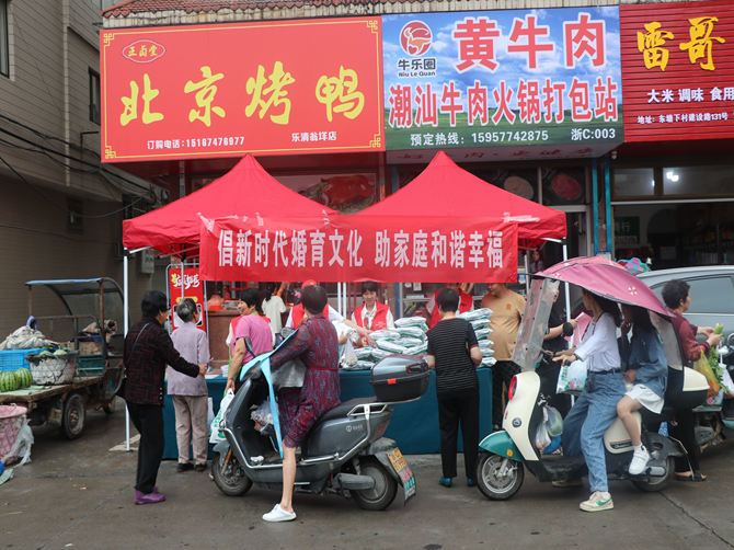为倡导广大家庭树立新型婚育观念,2023年5月21日,安徽省驻浙江省乐清市流动人口计划生育协会联合会、安徽省驻浙江省乐清市皖籍农民工综合服务站在翁垟街道塘下菜市场开展“倡新时代婚育文化·助家庭和谐幸福”户外宣传活动。