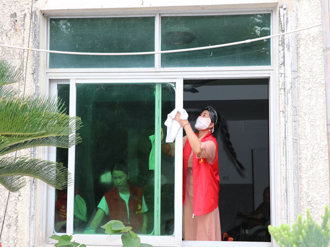 到达敬老院之后,党员们各自拿好工具积极主动的开始进行清扫,党员们分工合作,干劲十足,不放过任何一个角落。经过一个多小时的辛苦劳作,敬老院窗明几净、纤尘不染,院内面貌焕然一新。