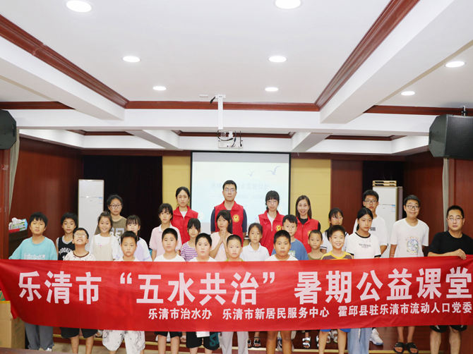 为提高新居民子女的护水意识,号召和带动身边人参与到“五水共治”行动中来。2023年8月15日,霍邱县驻乐清市流动人口党委、安徽省驻浙江省乐清市皖籍农民工综合服务站联合乐清市新居民中心特邀乐清市生态环境局科长王玉微开展乐清市“五水共治”暑期公益课堂,40名新居民子女参加。
