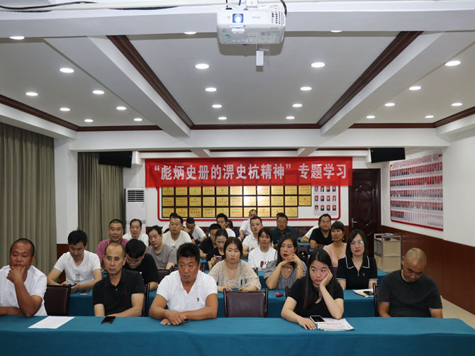 学习会上,首先观看了《人间天河淠史杭》系列纪录片,并在贾红印的讲解下深入了解淠史杭工程的建设历程和发挥的重要作用,深刻感悟老一辈建设者的自力更生、顽强拼搏、牺牲奉献、科学求实的淠史杭精神。