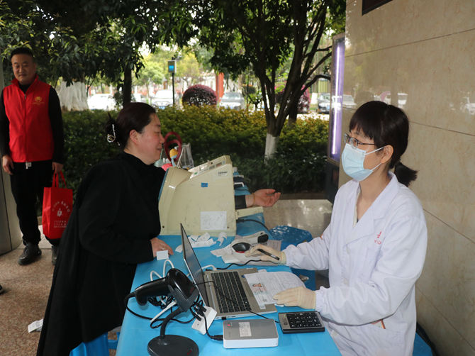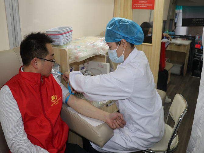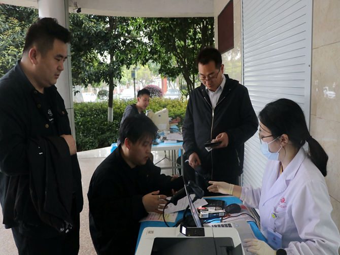 活动现场,大家在工作人员的指引下,井然有序的填表、登记、测量血压、验血、采血,如实报告身体健康状况,自觉配合医护人员完成身体检查和血型化验。