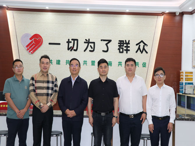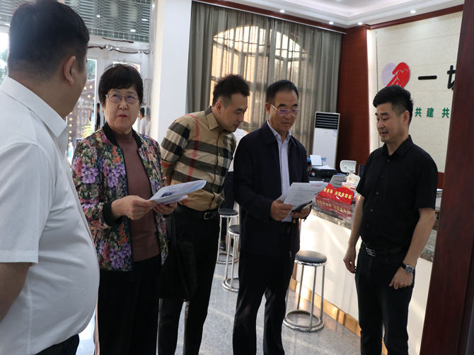 郭登明一行在党委书记陈孝明的陪同下,先后参观了综合服务大厅、综治驿站、向日葵心语驿站、智慧党建、母亲学堂、红色驿站、党员活动室等各职能办公室,浏览了党建等相关台账资料,并在一楼新业态初心驿站召开了座谈会。