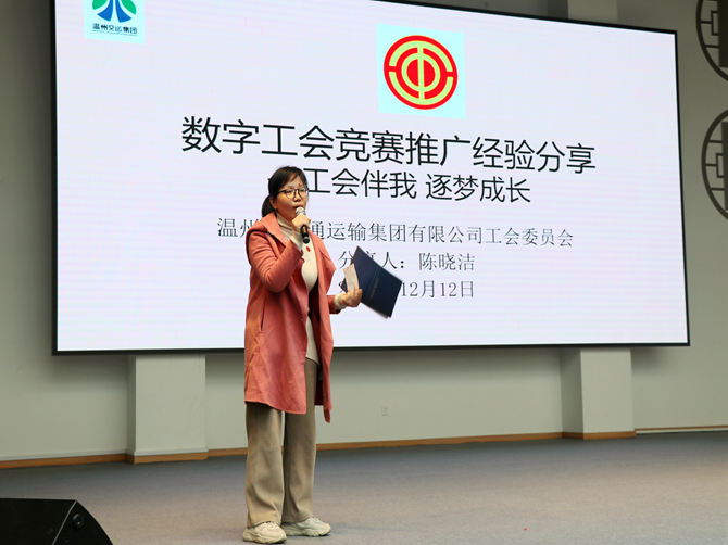颁奖结束后,由温州市交通运输集团有限公司工会委员会成员陈晓洁做数字工会竞赛推广经验分享。