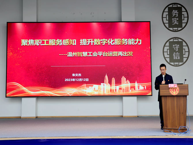 2023年12月12日,温州市智慧工会平台推广现场会在乐清市石帆街道朴湖职工活动中心召开,温州市总工会党组成员、副主席朱文杰,温州市总工会经审办主任、数字化改革专班负责人李强,乐清市总工会党组成员、副主席林秀,乐清市石帆街道党工委副书记周光出席会议,温州市各市、县总工会代表,乐清市各系统工会代表、安徽省驻乐清市新就业形态劳动者服务中心工会委员会、各异地商会工会代表等参加,李强主持会议。