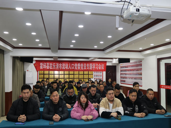 为深入学习习近平新时代中国特色社会主义思想,2023年12月22日,霍邱县驻乐清市流动人口党委在三楼会议室开展党员专题学习会议,党委书记陈孝明带领学习,七十名党员参加。