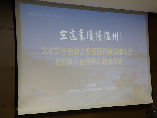 为助推温州强城行动和“醉美之城·幸福乐清”建设,2024年5月22日,乐清市档案馆、乐清市新居民服务中心在乐清市图书馆联合开展“在这里读懂温州”文化融合活动之新居民档案捐赠仪式及《乐清人在柯桥》赠书仪式。