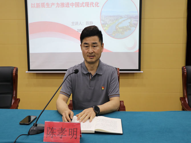 学习会上,陈静老师以经济发展政策为主题,从“中国式现代化需要克服的现实挑战”“什么是新质生产力”“以新质生产力推动中国式现代化行稳致远”三个方面详细传达了二十届三中全会精神内涵。他表示,新质生产力是习近平经济思想的又一重大创新,为企业持续发展、摆脱市场低迷困境提供了科学指引和根本遵循。