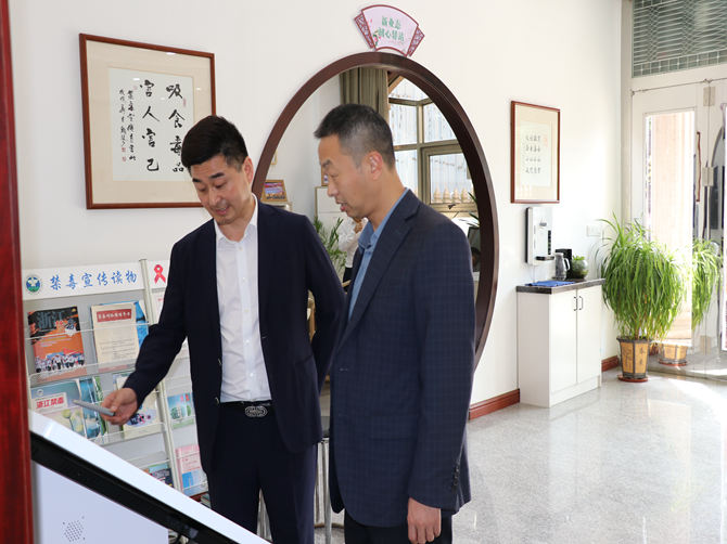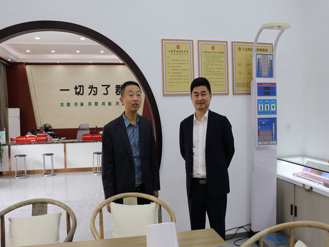 何曙春一行在协会会长陈孝明的陪同下,重点参观了协会新设立的新业态初心驿站及电子台账资料,并在三楼召开座谈会。