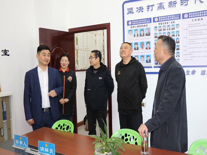 张大喜一行在党委书记、新业态工会主席陈孝明的陪同下,先后参观了户外宣传栏、综合服务大厅、新业态初心驿站、智慧党建、综治驿站、母亲学堂、工青妇红十字会、红色驿站等职能办公室,并重点浏览了党建等相关台账资料,随后在三楼召开交流座谈会,县总工会党组成员、副主席陈杰主持会议。