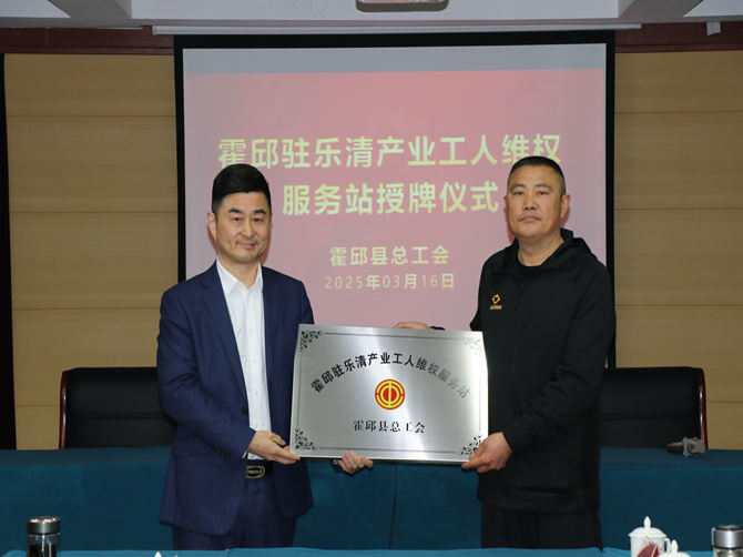 为保障新业态群体的权益维护有依可靠,董素平为新业态工会授牌“霍邱驻乐清产业工人维权服务站”。