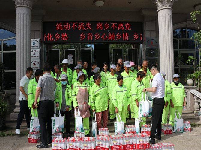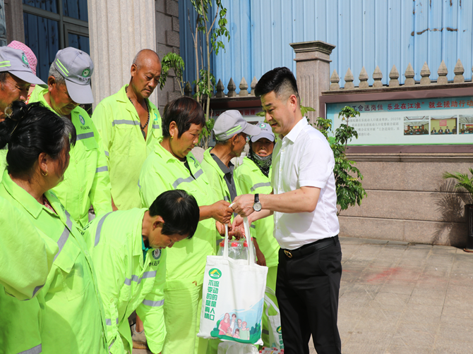 活动现场,40余名环卫工人齐聚新业态服务中心办公楼,工会、协会负责人与环卫工人们亲切交流,倾听他们的工作故事与生活需求。并为每位环卫工人亲手送上“清凉大礼包”,内含防暑降温药品、矿泉水及日常生活必需品。负责人表示,环卫工人是城市的“美容师”,无论酷暑严寒都默默奉献,希望通过此次活动传递社会对他们的尊重与关爱。
