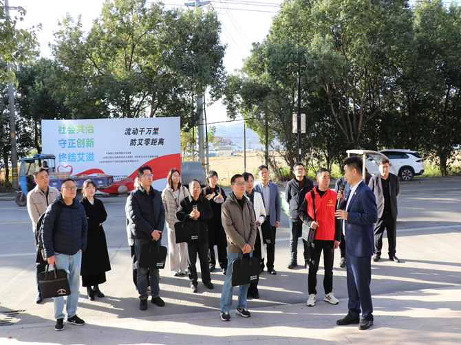 交流会伊始,与会领导在陈孝明的陪同下,先后参观了户外宣传栏、防艾宣传展板、综合服务大厅、新业态初心驿站、综治驿站、智慧党建、母亲学堂、红色驿站、健康教育基地等职能办公室,重点浏览了艾滋防治工作相关台账,并对基地的精细化管理和创新实践给予高度评价。