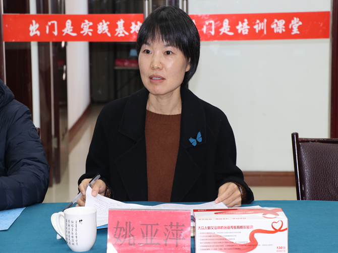 随后,王凤通过PPT形式,详细汇报了霍邱县艾滋病综合防治先行区的工作成效,分享了在流动人口群体中开展防治工作的重要做法。