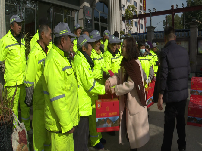 活动现场,乐清市总工会党组成员、女职委主任郑向静亲切慰问环卫工人,向他们致以节日问候,并高度肯定其为城市环境美化付出的辛勤劳动,并在服务站副站长贾红印的陪同下,为他们每人送上新春温暖大礼包。