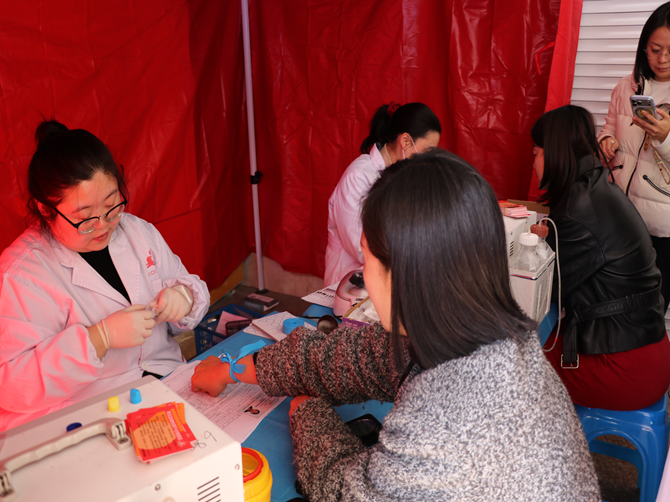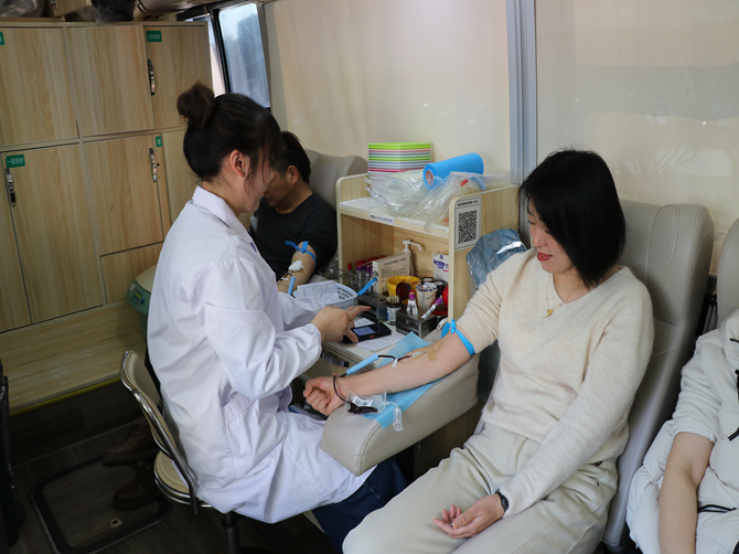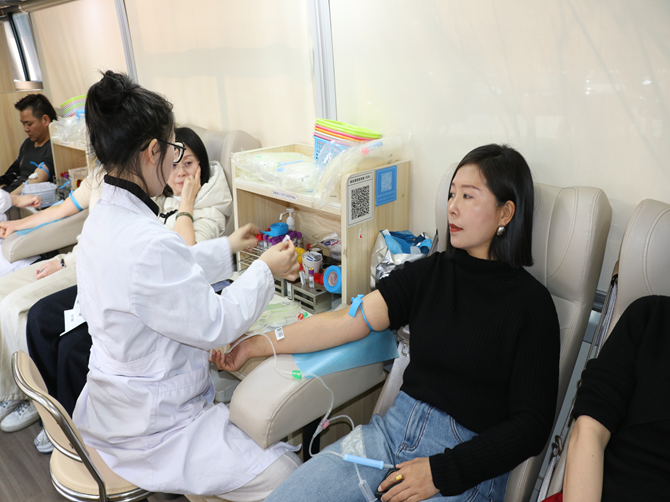 活动当天春寒料峭,却丝毫未减党员及新居民代表们的热情,大家早早抵达现场,在医护人员的引导下依次进行血压测量、血样检测等体检筛查,再由医护人员对符合献血条件的人员进行采血。献血现场暖意融融,大家纷纷挽起衣袖,看着带着体温的血液缓缓流入采血袋,脸上满是自豪。