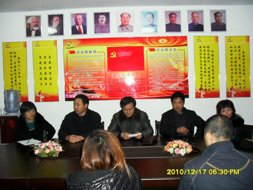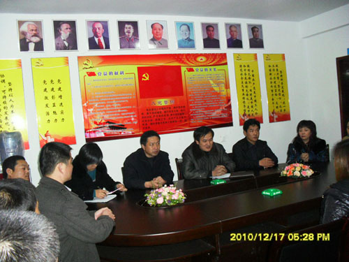 霍邱县组织部副部长张列鹏、计生委副主任谢文峰、霍邱县范桥乡乡长陈曦、党委副书记李大平来到霍邱驻乐清党支部检查指导党建工作,并且现场召开党建工作会议,听取党支部书记陈孝明汇报流动党员争优创先活动情况。