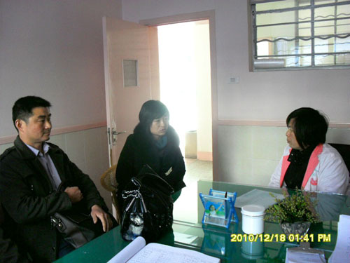 2010年12月18号,霍邱县范桥乡分管计划生育副书记李大平和霍邱县驻乐清市党支部书记陈孝明,来到乐清市柳市镇计划生育服务站,了解霍邱县流入乐清市的育龄妇女四项手术及孕环检情况,并且向服务站负责人,为霍邱育龄妇女争取获得优质服务和免费四项手术。