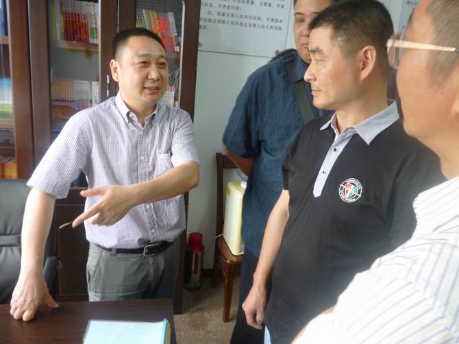 2012年6月6日,市政法委黄副书记和体育局刘副局长在翁垟街道党委副书记陈祥浩的陪同下,到霍邱县驻乐清市党支部视察工作。黄副书记首先参观了陈孝明调解工作室,后又调阅了党支部2012年上半年以来已调解好的案件,并且对我们党支部的工作给予了很高的评价,及提出了很宝贵的建议。黄副书记还特别指出,乐清市委.翁垟街道办事处会根据党支部的实际困难,给予相应的帮助。随后,黄副书记又参观了党支部会议室。对党支部会议室非常满意,认为我们会议室的规划和布置也非常规范。