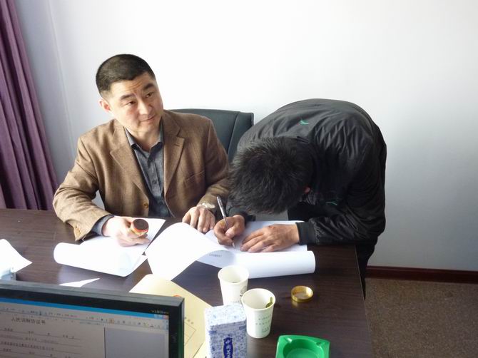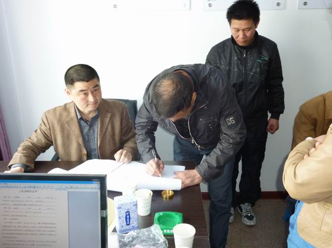 图为陈维树和陈福芝正在签订人民调解协议书。