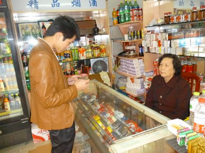 2012年7月20日,霍邱籍代录俊在翁垟南街一杂货店买了一条“芙蓉”牌香烟。回家拆开包装吸时,发现与平时吸的感觉不太一样,再看看烟灰的颜色,经验告诉他这条香烟买假了。代录俊立即找到香烟店老板,要求退换,可是香烟店老板拒不承认香烟是他卖的,无奈之下,代录俊打电话给我们党支部质量监督员付卫章同志寻求帮助。半小时后,付卫章赶到杂货店,听了代录俊的叙述后,付卫章随后找来了本地懂香烟当地师傅,经认定,香烟确实有问题。后来经过监督员付卫章耐心的做工作,晓之以理,动之以情,最后香烟店老板答应给代录俊重新换条同一品牌的香烟。代录俊表示同意。