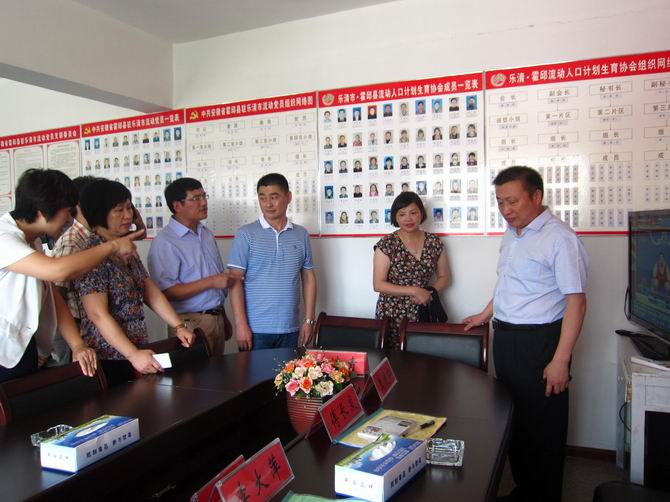 2012年8月6日,霍邱县常务副县长孙玉俊.县计生委主任詹家勤和乐清市副市长方青.计生局副局长林秀等两县市领导到霍邱县驻乐清市党支部+计划生育协会参观和指导工作。孙县长和方市长等领导一同参观了党支部每一个办公室,首先孙县长和方市长来到了党支部书记办公室,查看了党支部日常开展活动的相关照片和党支部每一次开展党员学习的会议记录。陈书记还亲自为孙县长和方市长打开我们党支部自己建立的网站,并介绍了网站的内容。随后又来到了党员禁毒志愿者基地办公室,查阅了禁毒办公室日常开展工作的活动照片。接着又来到了民工维权办公室,查阅了2012年上半年以来党支部为老乡办理的案件及民工维权双方当事人所签订的调解协议书。孙县长和方市长又来到了流动人口计划生育协会办公室,查看了计划生育协会会员信息表和协会每一次召开例会的会议记录。最后孙县长和方市长等领导来到了支部党员活动室,参观了党员形象照片和流动党员组织网络图以及协会会员形象照片和计划生育协会组织网络图。参观过之后,两县市领导对我们每一个办公室所做的工作都给予了很高的评价,也给我们提出了不少的宝贵意见。特别是孙县长,给了我们很大的鼓励,希望我们再接再厉为霍邱籍老乡办好事.办实事.也希望我们“党支部+协会”在以后的工作当中更上一层楼.