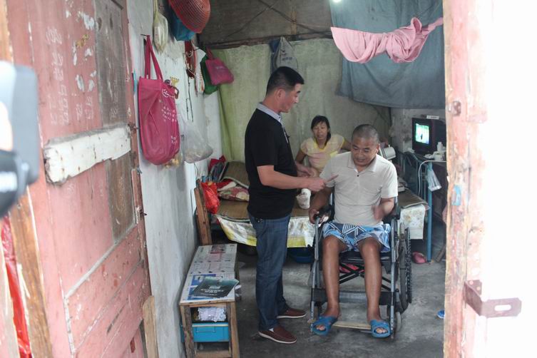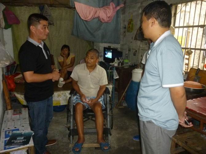 2012年8月7日霍邱县驻乐清市党支部书记陈孝明和范桥乡组织委员刘培青代表霍邱县范桥乡党委政府前来慰问现住在柳市镇万里桥村的付振勤。付振勤是霍邱县范桥乡老楼村人,几年前来到柳市打工,在2009年时,因为在给一本地村民拆房子时,不慎从房子上摔下来,造成付振勤瘫痪。由于这家房东实在没有钱,法院判下来的50万赔偿金无法执行。所以现在的付振勤生活非常困难。就在前几天党支部突然又听说付振勤妻子的脚也受伤了,不能下床。党支部书记陈孝明听说后,立即组织有关人员前来慰问,并送上慰问金,在临走时,陈书记让付振勤好好静养,至于你生活上问题,范桥乡政府会替你们解决的,请不要担心。我们党支部也会帮你解决一部分困难的,你一定要振作精神,好好的生活。