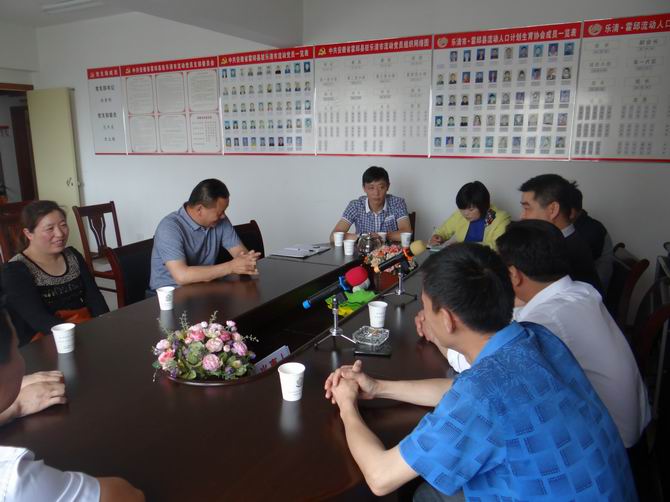2013年5月21日,王截流乡人大主席、党委副书记孔祥新、组织委员张华平带领所属的朱张、南滩、张岭等村干部不远千里来到温州乐清督催在乐务工的育龄妇女及时到乐清·霍邱流动人口计划生育服务站参检。并在霍邱县驻乐清市流动人口党支部现场召开了关于如何进一步开展计划生育孕检工作座谈会。霍邱县驻乐清市流动人口党支部书记陈孝明、霍邱县流动党员小组组长、计划生育协会理事及协会小组组长参加了此次会议。会上,党支部书记陈孝明首先对孔书记、张委员等领导莅临支部指导工作表示热烈的欢迎。随后又对“协会+支部”平时开展的所有工作做了简单而又全面的介绍。听过介绍后,王截流党委副书记孔祥新对我们工作也给予了很高的评价。他认为我们的计划生育服务工作非常到位。真正发挥了计划生育协会的作用;管理上更是非常规范,制定了自己的工作制度;平时开展的活动包括计生、司法、工商、禁毒等各个方面内容也非常全面。 最后,孔副书记针对“协会+支部”的实际情况,提出了几点宝贵意见。 一、要通过多种形式,广泛宣传。“协会+支部”充分利用广播、宣传车、宣传标语、过街横幅等方式增强宣传力度,不断扩大计生决战月活动的宣传面。