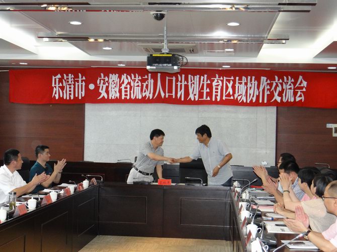 最后,在与会领导的多方沟通和协议下,两地合作协议书孕育而成。霍邱县委张克定书记书记与乐清市方青副书记、霍邱县计生委主任李跃与乐清市计生局局长施旭晨就流动人口党建、计生、治安管理等方面工作达成合作意向,并签订流动人口计划生育两地区域双向互动服务管理协议书、流动人口计划生育服务管理合作框架协议书。