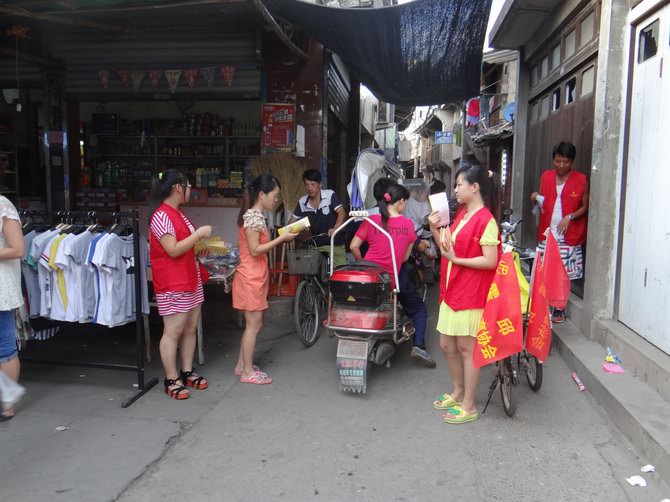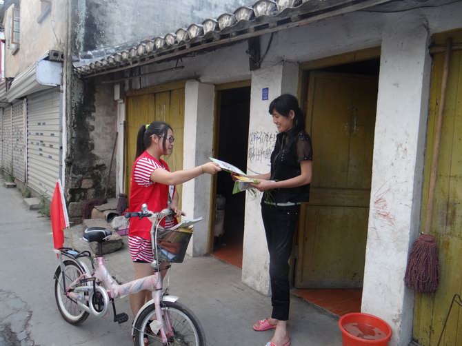 为进一步宣传计 划生育政策、法规,加深霍邱新居民对计划生育政策和法规的掌握,提高他们对计划生育政策和知识的知晓率。2013年8月1日,霍邱籍党员、团员志愿者、计生协会会员开展了自行车队到户一对一宣传活动。自行车队一行通过骑行的方式,分别到达翁垟街道的东方村、前西门村、南街村等几个新居民较聚集的地区进行流动宣传。本次活动一共发放了免费避孕药具100多只、及《流动人口计划生育工作条例》、新居民计划生育免费服务指南等宣传资料1000余份。