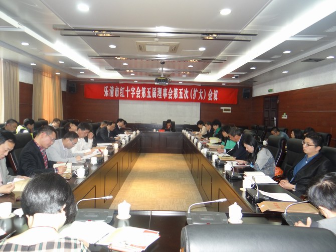 2014年3月27日,乐清市红十字会第五届理事会第五次扩大会议在新市府会议中心二楼政协议事厅召开。 市红十字会会长方青、专职副会长吴步珠、秘书长朱艳丹等领导出席会议。市红十字会第五届理事会理事、霍邱驻乐清流动人口红十字会负责人,共50余人参加。