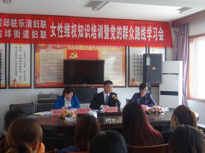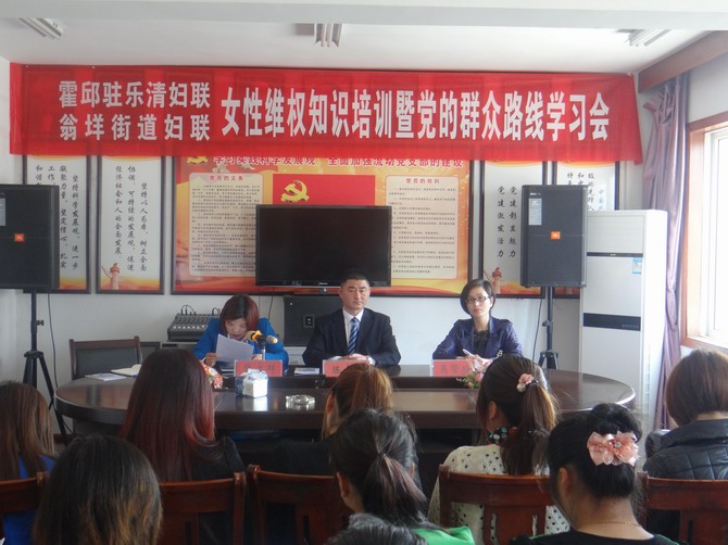 为扎实认真开展好以为民务实清廉为主要内容的党的群众路线育实践活动,努力做到“帮妇女所需,尽妇联所能”,2014年4月10日,霍邱驻乐清妇女联合委员会、乐清市翁垟街道妇联共同开展了女性维权知识培训会暨党的群众路线教育实践活学习会。会议由霍邱驻乐清流动人口党支部书记陈孝明主持。乐清市翁垟街道妇联主任吴贤玲、霍邱驻乐清妇女联合会主任张文群及霍邱籍妇女代表等40多人参加了会议。