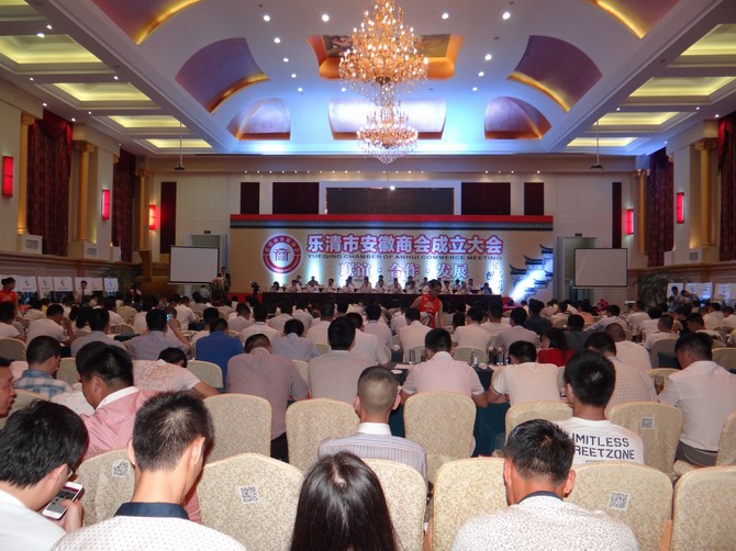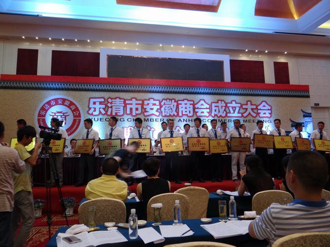 | 2014年7月12日,乐清市安徽商会成立大会在乐清市金鼎大酒店举行。全国政协第十届常委、安徽省政协第十届副主席王鹤龄,发改委高新技术司副司长李佳岩及乐清市委副书记张亨利、副市长刘云峰等出席成立大会。