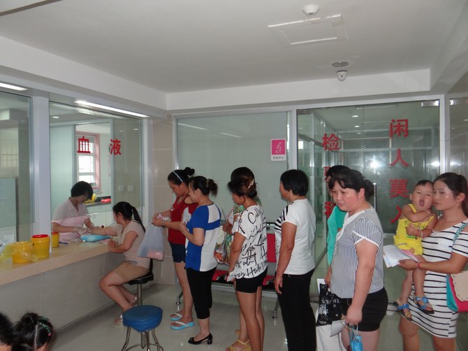 安徽籍育龄妇女正在有序的进行抽血化验检查