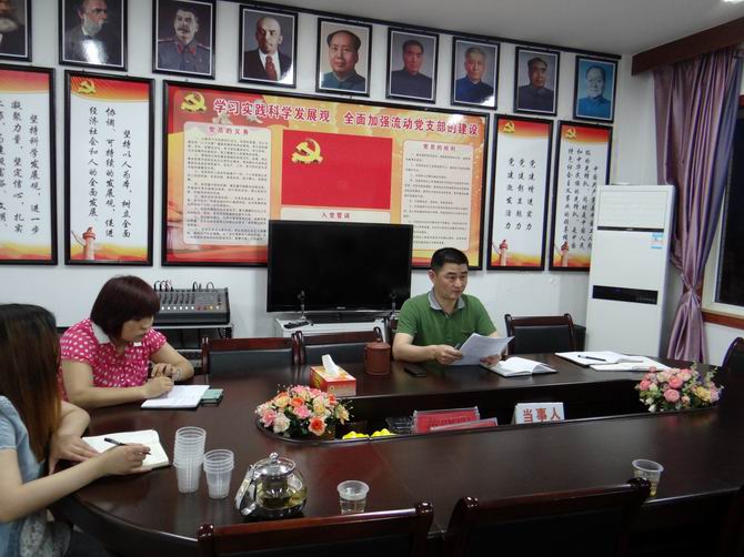 2013年6月14日晚,霍邱县驻乐清市流动党员支部委员会召开党员小组组长、计生协会理事成员会议。会议由支部书记陈孝明主持并做重要讲话。会议有三项议程。首先是陈孝明书记就前阶段“协会+支部”工作开展的情况作以简要介绍。其次,关于做好2013年6月17日,安徽省六安市计生委副主任崔树贵、霍邱县委副书记张克定来我“协会+支部”参观指导的一系列准备工作。陈孝明书记说:“我们家乡领导不远千里来到乐清看望我们,为我们指导工作,是我们的无上荣耀。所以我们要以全新的面貌来迎接家乡领导检查 。能够得到领导的重视,这与在座各位的共同努力也是分不开的。最后,筹备2013年6月18日关于霍邱县总工会、霍邱县妇女联合会、共青团霍邱县委员会三家单位在霍邱县驻乐清市流动人口“协会+支部”成立霍邱县驻乐清流动人口党支部的工会、共青团、妇联的大型会议。陈孝明书记说:“几家单位的成立,进一步充分体现了霍邱县委、乐清市委对我们支部建设工作的高度重视,必将对流动人口党支部、计生协会的建设和发展产生巨大的推动作用。陈孝明做最后强调:“希望在座的党员、协会理事成员、会员要充分起到模范带头作用,打起十二分的精神来对待这次会议的筹备和运作,把我“协会+支部”的工作推向一个新的起点,并在此基础上再创佳绩、再造辉煌