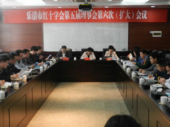 2015年3月18日,乐清市红十字会第五届理事会第六次(扩大)会议在新市府会议中心二楼政协议事厅召开。 市红十字会会长方青、专职副会长吴步珠、秘书长朱艳丹等领导出席会议。市红十字会第六届理事会理事、霍邱驻乐清流动人口红十字会负责人,共40余人参加。