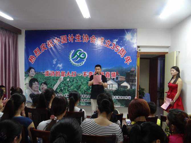 为纪念计划生育协会成立35周年,2015年5月29日晚,安徽省·浙江省流动人口计划生育区域协作乐清市工作站举办了“庆祝计生协会成立35周年”文艺小型晚会,安徽籍在乐流动党员及广大育龄妇女参加并观看了本次晚会。 晚会在工作站负责人陈孝明的致词下拉开序幕,晚会以计生知识问答、歌唱、朗诵以及小品等多种表演方式,让观众有种耳目一新的感觉,其间举办的猜字游戏博得大家的一致好评,计生有奖知识问答更是吸引了大家踊跃参加,极大的活跃了气氛,作为压轴戏的小品《倒霉一家人》更是将晚会推上了高潮,场中笑声不断,热闹非凡。最后,由工作站负责人陈孝明为大家演唱《难忘今宵》结束了本次丰富而又精彩的晚会。