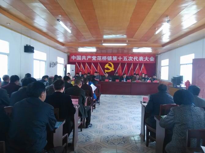 2016年3月30日上午8时,在雄壮的国歌声中,全镇人民翘首以盼的范桥镇第十五次代表大会隆重开幕。镇政府一楼会议室内,来自霍邱县驻乐清市流动人口党委、镇各村、各站所等全镇30个党组织、130名党员代表参加会议,县委组织部领导到会祝贺并宣读贺信。